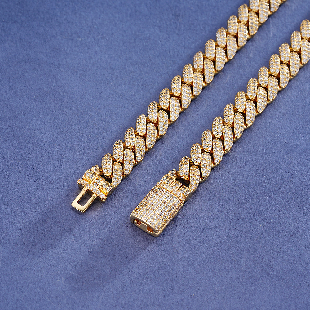 Presencia, brillo y poder en una sola pieza. Nuestra Cubana Full Ice 8mm está completamente cubierta con piedras de alto brillo A5 colocadas a mano, creando un efecto iced-out que destaca desde cualquier ángulo.