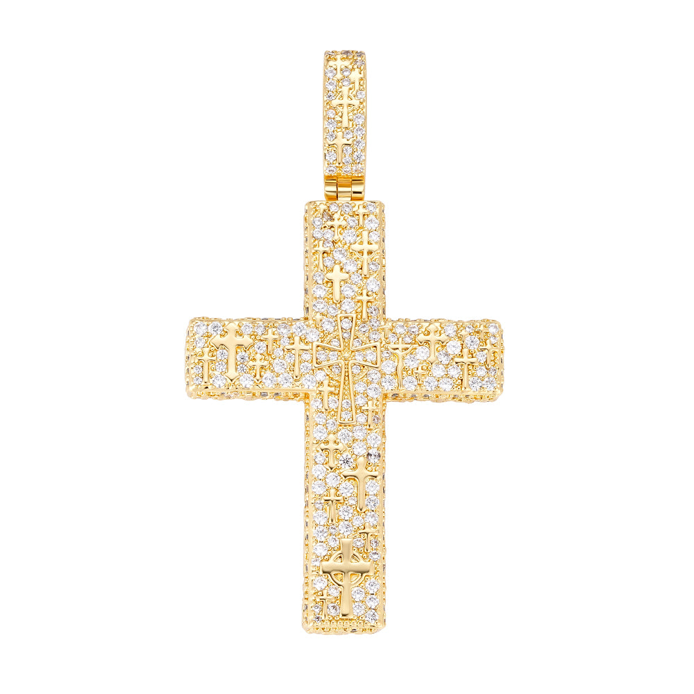 Presencia, brillo y estilo en una sola pieza. Nuestro Pendant Cruz Legacy está completamente cubierto con piedras de alto brillo A5 colocadas a mano, creando un efecto iced-out que destaca desde cualquier ángulo.