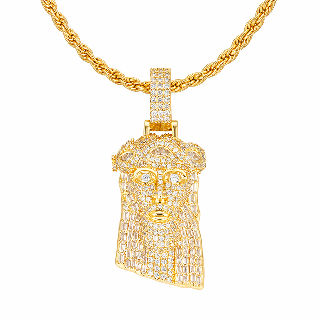 El pendant de Cristo con acabado pulido resalta cada detalle con precisión, mientras la cadena tipo soga 3mm aporta ese toque clásico y versátil que eleva cualquier outfit sin esfuerzo.